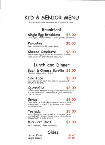 3. Kid and senior Menu