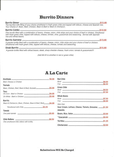 6. Burrito Dinners - A La Carte